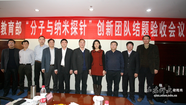 验收专家组认真听取了报告,经过现场考察、专家质询和专家组评议等环节,一致认为:创新团队建设期内凝练形成了四个具有重要科学意义和经济社会价值的研究方向,建成了一支结构合理、创新能力强的学术梯队。团队拥有“973”项目首席科学家、国家杰出青年基金获得者、长江学者特聘教授、国家优秀青年基金获得者等在内的高层次人才。依托创新团队成功申报建设了 4个省部级科研平台,新建成中试及产业化基地1个。团队依托的分析化学学科被评为山东省“十二五”特色重点学科,化学学科进入化学领域全球("ESI")前1%。创新团队的科研条件和平台都得到了质的提升,完成了国家“973”课题、国家自然科学基金杰出青年基金、重大研究计划、面上项目等国家和省部级课题20余项。主持国家“973”计划项目、国家自然科学基金重大项目课题和重点基金项目、重大仪器专项、面上项目等国家和省部级课题60余项,新增科研经费6000余万元。在J. Am. Chem. Soc., Angew. Chem. Int. Ed.等国际重要学术刊物上发表SCI论文170篇,其中影响因子5.0以上57篇,研究成果引起国内外广泛的关注。申请发明专利18件,授权13件;完成了3项科技成果的产业化,产生了显著的社会和经济效益,获山东省技术发明一等奖、二等奖各1项。创新团队积极促进科研与教学互动,实施优势转化,形成了科教融合育人的“正效循环”效应。建立了科学的运行机制,实行资源整合、制度规范和队伍建设三结合的管理模式。建立健全各项规章制度,完善创新科技评价体系和创新工作机制,与国外高水平研究机构建立了长期的科研合作与交流。