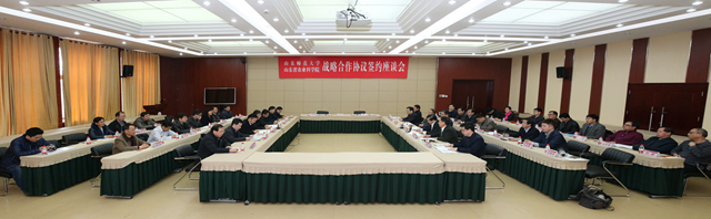 巩守柳代表省教育厅对双方战略合作框架协议及联合培养研究生协议的签署表示祝贺。他表示,启动战略合作,深化科教融合和产教融合,是双方勇挑社会责任重担的一种诠释、一次践行,对于大力推进实施创新驱动发展战略,落实国家和山东省新的发展理念具有重要意义。省教育厅将大力支持双方合作共建,希望双方敞开胸怀,全力合作,充分发挥各自优势,组建科研创新团队,创新人才培养模式,实现产学研良性互动,协同创造更多高水平成果,加快成果转化,培养更多适应经济和社会发展需求的高素质复合型人才,为加快经济文化强省建设做出新的更大贡献。