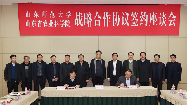 张文新与刘兆辉分别代表双方签署了《山东师范大学、山东省农业科学院战略合作框架协议》、《山东师范大学、山东省农业科学院联合培养研究生协议》。根据协议约定,双方将在人才培养、科研攻关、平台共建、信息共享、人员交流等方面开展高起点、宽领域、全方位、多层次的合作。为确保协议顺利实施,双方约定成立战略合作领导小组,负责指导战略合作各方面工作。